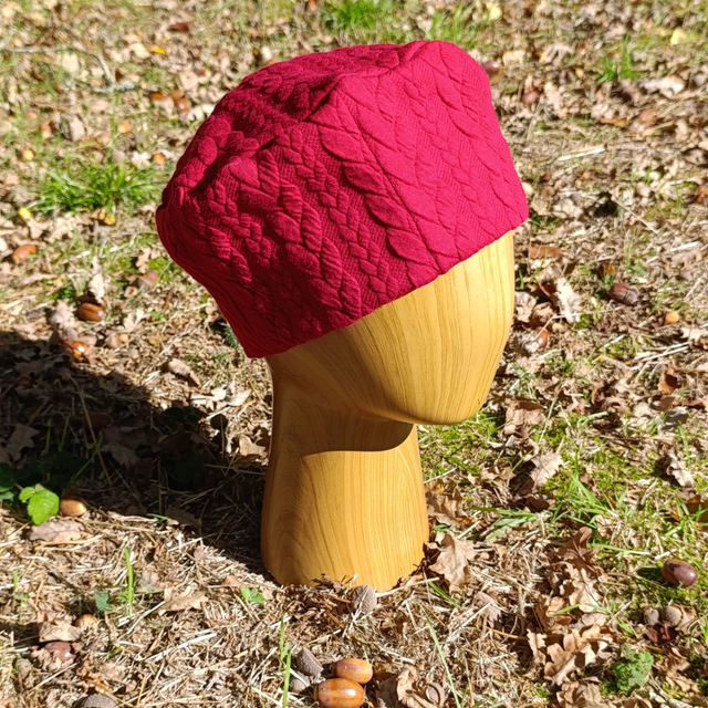 Bonnet extensible en matière douce torsadée, pour garder la tête bien au chaud 🥰